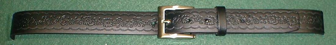 Made of genuine leather, printed pattern, rounded side and dye. Buckle silver riveted. length 48 and over additional cost