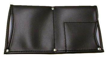 Made of sturdy vinyl with elastics to fit automobile sun guard. Can hold notes and documents. Colour: Black
