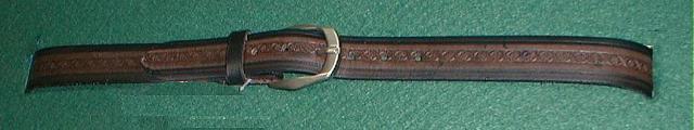 Fait en cuir de vache 1 3/16, côtés teints, boucle, boutons pressions, imprimée.