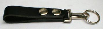 Fait en cuir, 2 boutons pressions avec petit mousqueton et anneau a clé.
