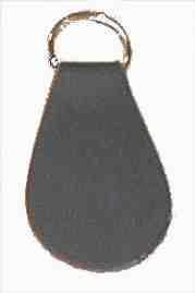 Fait en cuir véritable, collé, imprimé, anneau  ¾ pouce. Quantité minimum : 200 unités.              Couleur d'impression : or ou argent régulier.   Pour une autre couleur en faire la demande.