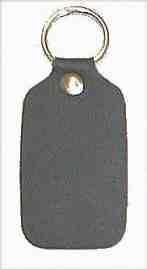 Fait en cuir véritable, imprimé, anneau ¾ pouce avec rivet tube.           Quantité minimum : 200 unités.             Couleur d'impression : or ou argent  Pour une autre couleur en faire la demande.
