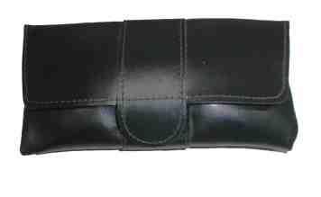 Fait en cuir souple de qualité, cousu, retourné, fermeture en velco, ganse au dos pour ceinture, grandeur: 7 x 3 1/2". Couleur: Noir
