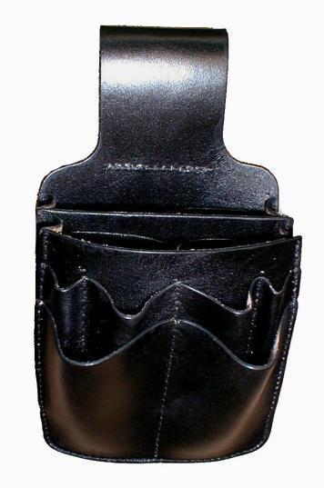 Fait en cuir de bonne qualité, 2 grandes poches avec séparateurs, 4 crayons ou feutres, 2 pochettes pour couteaux. Se porte à la ceinture.