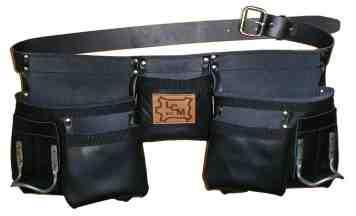 Fait en cuir de 1 iere qualité, 2 grandes poches, 3 petites poches, 2 porte-marteaux,2 porte-crayons, ceinture en cuir 1 1/2". Couleur: noir