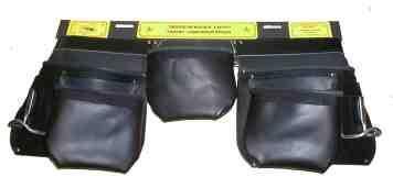 Fait en cuir de 1 iere qualité, 2 grandes poches extra grandes, 3 moyennes poches, 2 porte-marteaux,2 porte-crayons, 2 porte-marteaux, ceinture en cuir 1 1/2". Couleur: noir